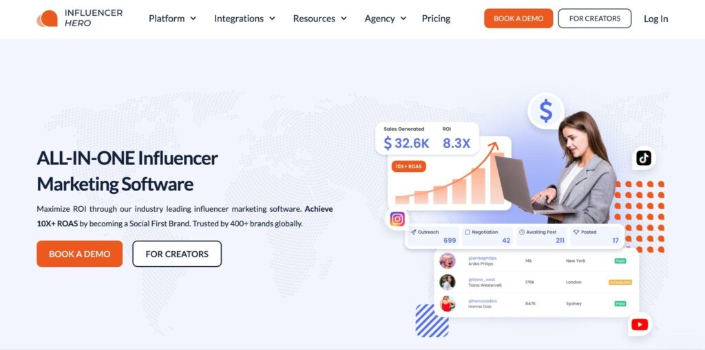 Influencer Hero is an all-in-one creator management software that acts like a specialized CRM for your influencer marketing efforts. While many platforms focus solely on discovery, this tool is designed to manage the entire lifecycle of a partnership, from the first outreach email to automated product gifting and ROI tracking.