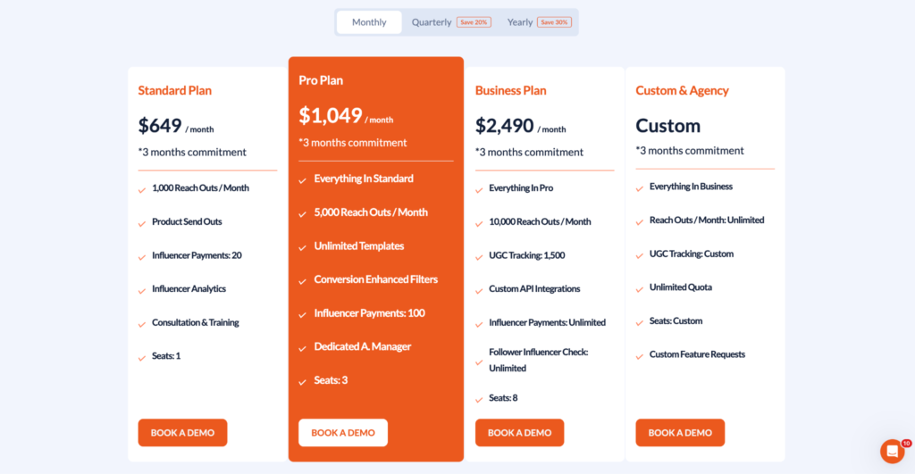 Influencer Hero is known for being more accessible than enterprise-heavy tools like Aspire or Grin. They offer a tiered subscription model starting at $649/month, offering a Pro Plan at $1,049 / month, a Business Plan at $2,490 / month, and a Custom & Agency Plan upon request.