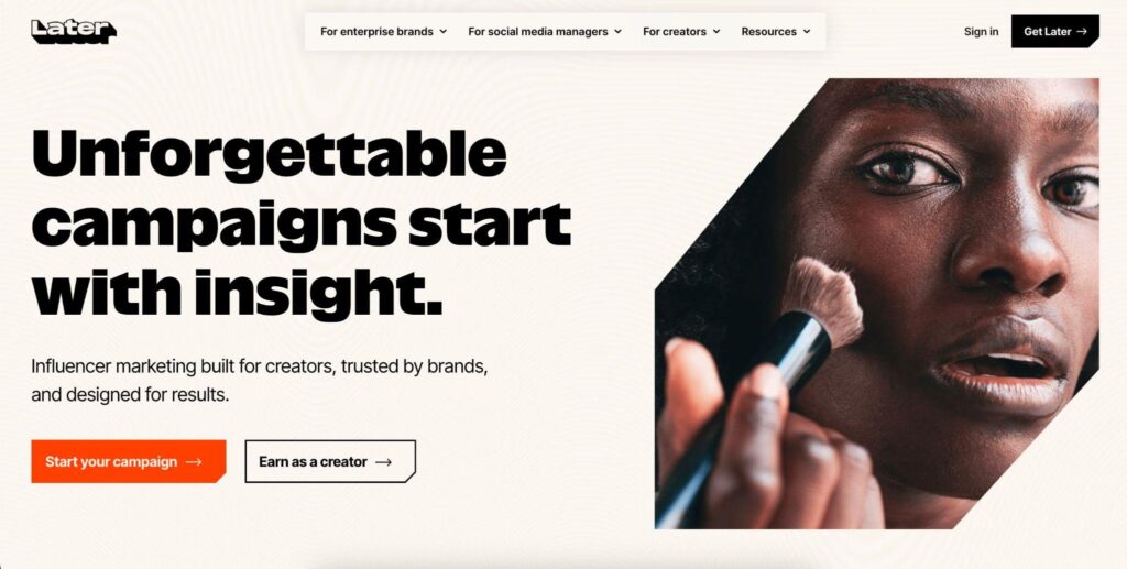 Later is the “all-in-one” choice for consumer-facing brands (fashion, beauty, food) that want to keep their content creation and creator management under one roof.