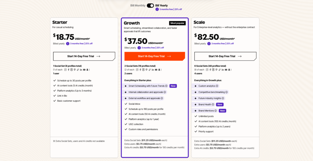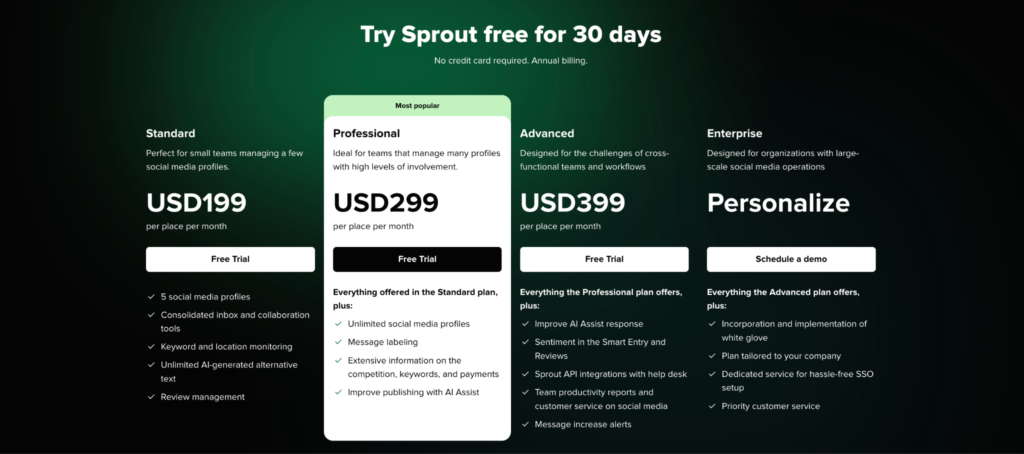 Sprout Social is priced per user, which can get expensive for larger teams: